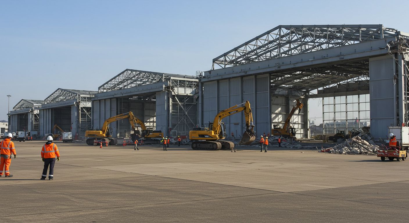 Фото: демонтаж ангара с аккуратной сортировкой металлоконструкций и подготовкой к расширению территории